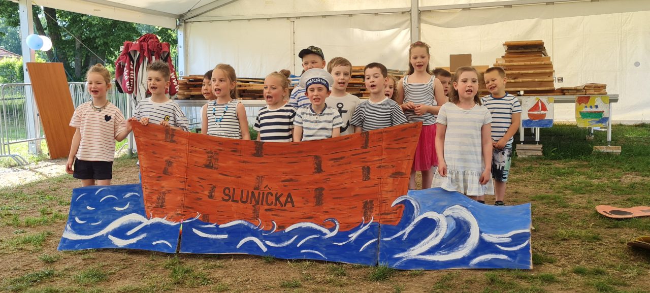 Na úvod slavnostního rozloučení děti předvedly svým rodičům a prarodičům krátký program v námořnickém stylu, který společně nacvičily. Po několika veselých písničkách došlo na slavnostní vyřazení předškoláků, kteří od paní učitelky Markéty Ďurinové a paní asistentky Lindy Ledašilové obdrželi šerpy, medaile a dárkové tašky na památku. V taškách se mimo jiné ukrývala pohádková kniha pro první čtení, která se jim brzy bude hodit, a vlastnoručně vyrobené tričko s podpisy dětí i vyučujících. Paní učitelka Kamila Hroudová se bohužel kvůli nemoci nemohla akce zúčastnit.