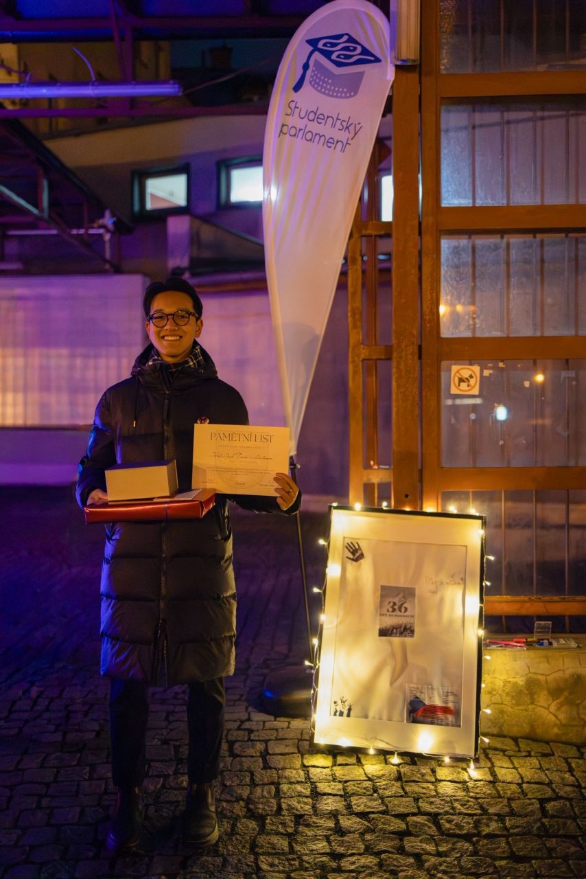 Přebírání ocenění za celostátní participaci a za reprezentaci města na oslavách 17. listopadu 2025