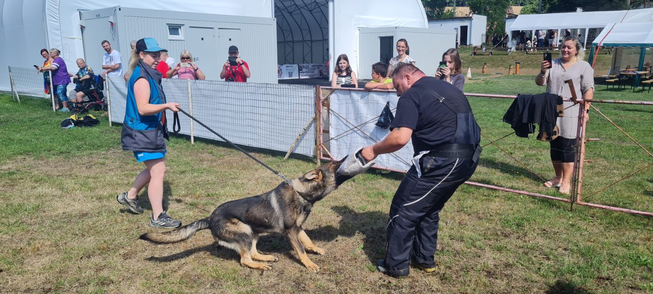 Během sobotního programu pro veřejnost proběhly ukázky různých psích sportů. Přímo v hale bylo k vidění vystoupení dog dancingu, což je tanec se psem, na venkovních plochách potom ukázky obrany, hoopers či agility.