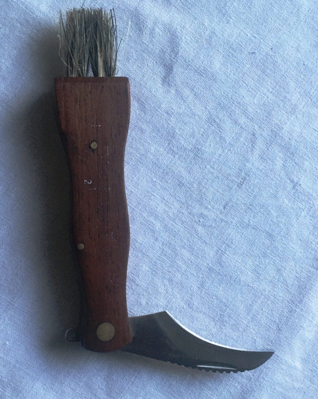 Nedávno jsem potkala speciální prvorepublikový kapesní nůž na houby (na obrázku) a přímo mne nadchl ten kousek kartáčku na straně. Přesně na to očištění od mechu a jehličí. Vyvolala spoustu vzpomínek. Vzala jsem ho do ruky a ucítila pouto mezi těma dvěma muži, kteří určitě právě takové nožíky měli. Dnes leží v košíku a těší se, až znovu poslouží. A to si pište, že dny jeho slávy nejsou u konce! Však už máme pořádné nůše dvě.