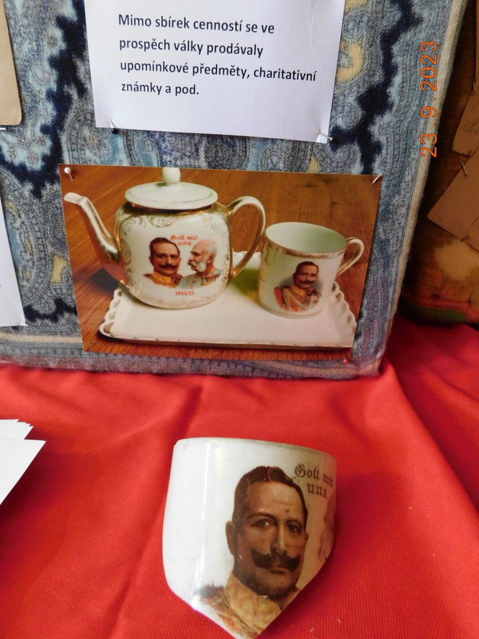 Střep hrníčku byl k vidění i tady v Aši. I s úvodním obrázkem jsem ho vystavila 23. 9. 2023. Bylo to ve sklepních prostorách při trzích a i tady vyprávění zaujalo. Střípek je opět pečlivě zabalený a čeká na další příležitost.