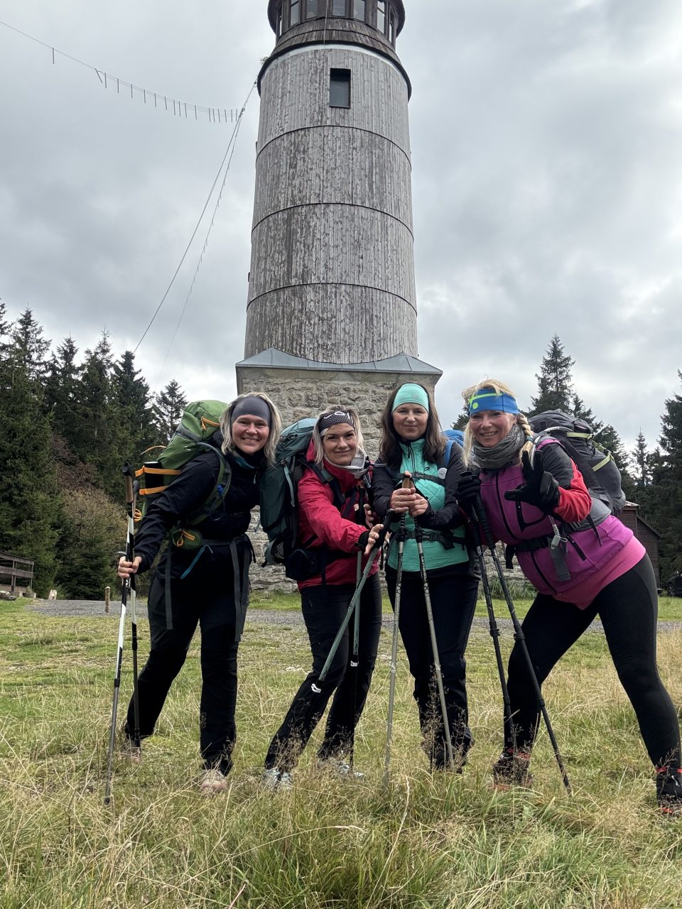 Míša: Na rozhledně. Připravili jsme jim s manželem překvápko. Občerstvení, přípitek, poháry. Čekaly jsme na holky i s dětmi, byla to obrovská radost všech. Byla jsem na ně strašně pyšná, že to všechno ušly. Nešly nakonec až na nejzápadnější bod, tam jsme společně byly už dříve.